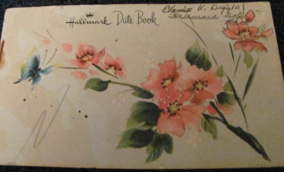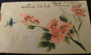 Yesterday when I was looking for something in the closet in the guest room I opened a large plastic file box and found a treasure trove of memories. There are letters between Jim and me, souvenirs from our honeymoon and this precious date-book.